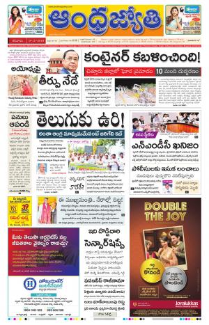 Subscribe login to subscribe 1. Today s issue yesterday sunday saturday friday thursday wednesday. Check out ap telangana news paper online telugu cinema news nri today rasi phalalu astrology in telugu many more at andhra jyothy jyothi telugu news. Andhra jyothi epaper is the second largest telugu daily newspaper in andhra pradesh.